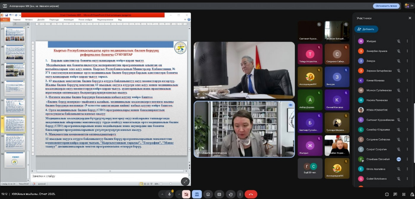 On January 22, 2026, the General Assembly of the Association of Medical Colleges of Kyrgyzstan (AKMC) was held. The meeting was attended by members of the Association and representatives of medical colleges and opened by the head of the Department of Medical Education and Science of the Ministry of Health Z.A. Dolonbayeva.