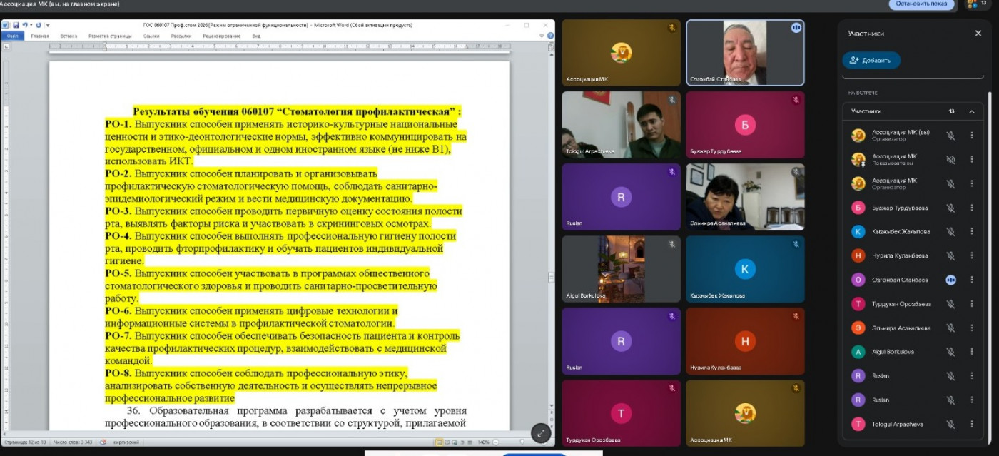 24 февраля 2026 года в Кыргызской Республике прошёл круглый стол рабочей группы медицинских колледжей в гибридном формате на тему: «Итоги формирования результатов обучения по специальностям».