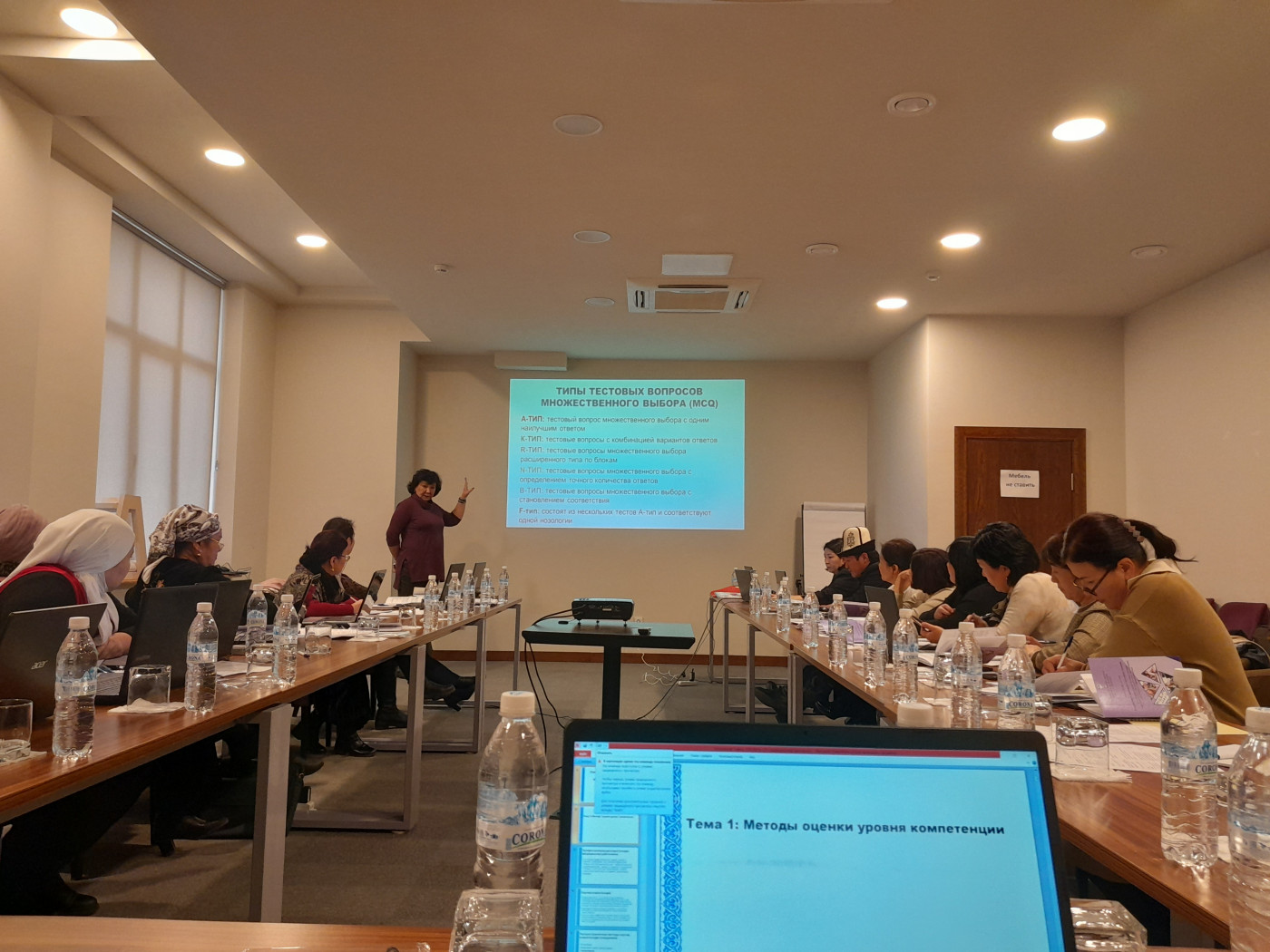 In order to implement the order of the Ministry of Health of the Kyrgyz Republic dated April 19, 2022 No. 484 "On the introduction of an experimental program for the specialty "Medical Nurse" in secondary vocational education, seminar-trainings are being organized for pilot colleges. On October 18-19, 2022, a training session on the development of multiple-choice test tasks was held for the teachers of the Bishkek Medical College.