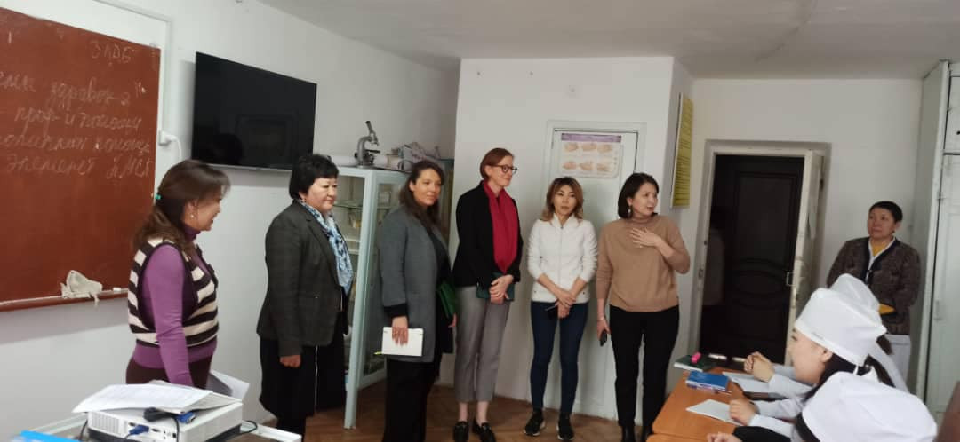 On March 13-14, the MER project team, together with colleagues from Geneva, Marina Giachino and Catherine Zimmerman, visited Tokmok and Naryn medical colleges. Our colleagues held meetings with the leadership of colleges, teachers and students. Also in the city of Naryn, a meeting was held with the Deputy Director of the Naryn Regional United Hospital. The purpose of the visits to the colleges is to learn how the implementation of the pilot program in the specialty "Nursing" is going on, as well as to find out how the practice of students enrolled in this program is going.