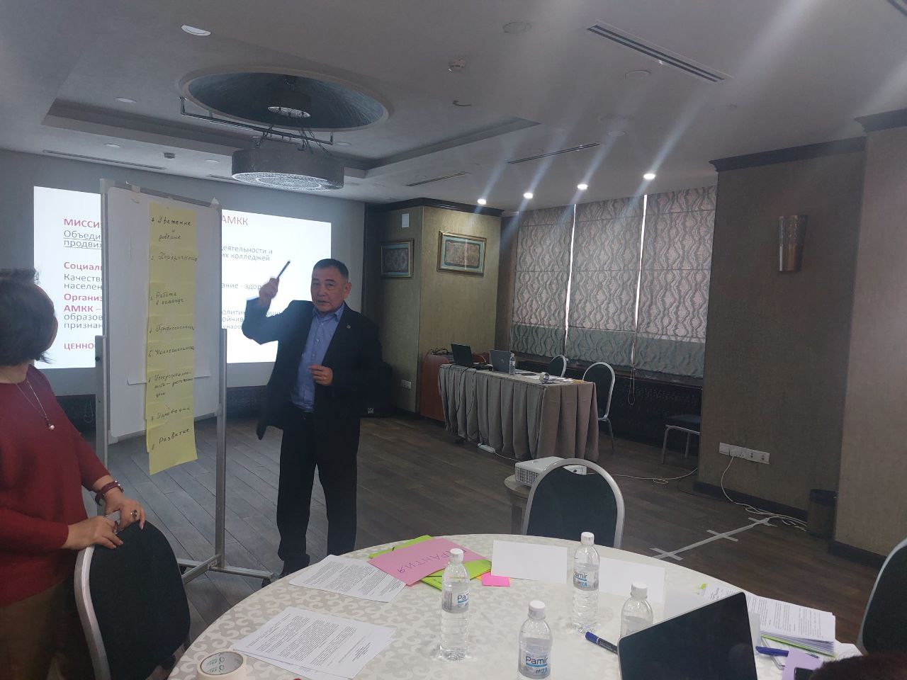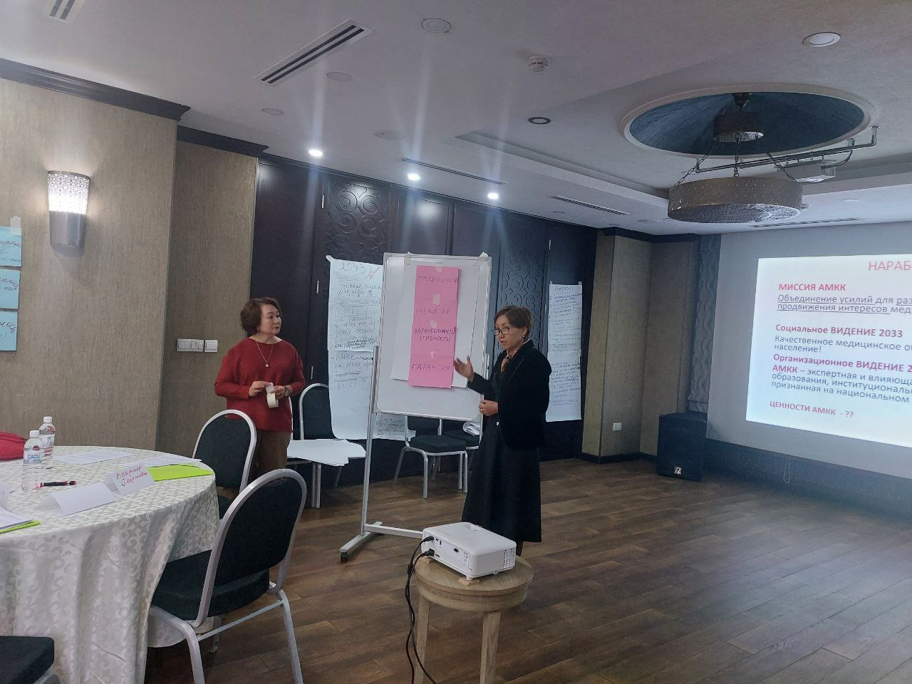 The MER project and the association organized the training "Strategic Planning of the Association of Medical Colleges of Kyrgyzstan" in order to provide information on strategic planning methods and practical methods for further use for effective planning of the Association of Medical Colleges of Kyrgyzstan. The training was held on March 29-30 in Bishkek and was attended by members of KMKA. Aida Kurbanova and Cholpon Akmatova, trainers of the organization "Grazhdanskoe soznie" introduced the rules and methods of writing the Strategic Plan, which is the main document of the association, and the participants worked in groups. As a result of the training, a working group was formed to develop the Strategic Plan, and the participants were given a certificate.