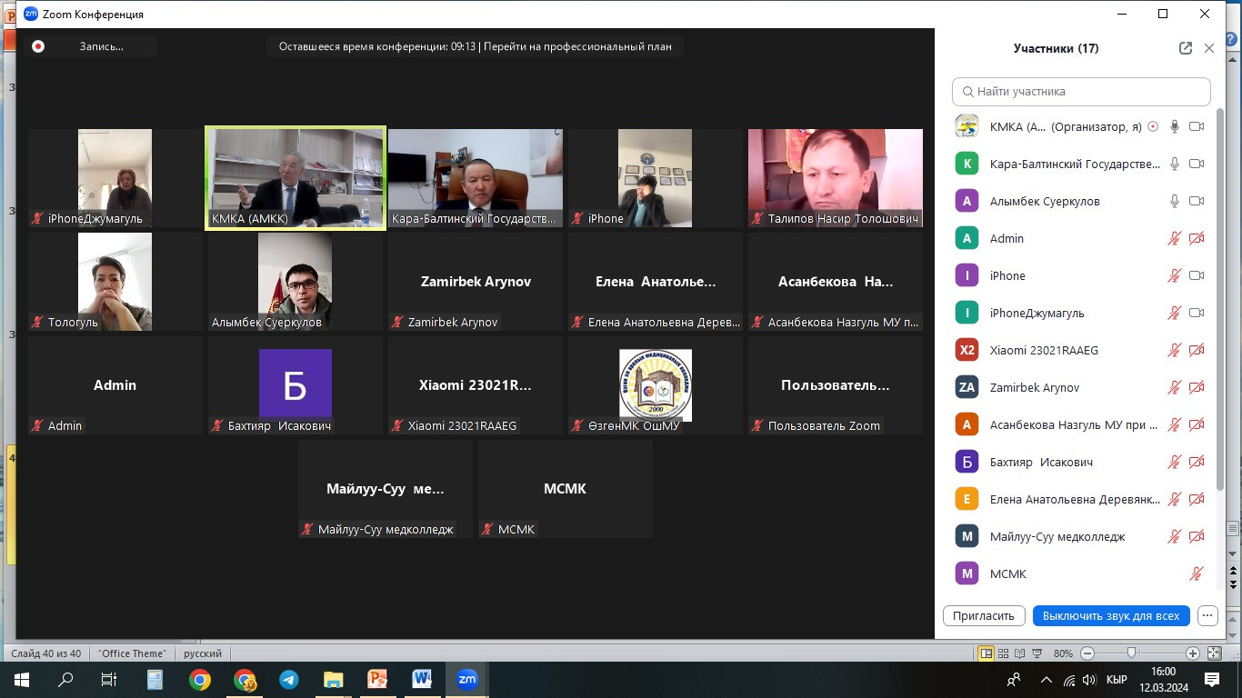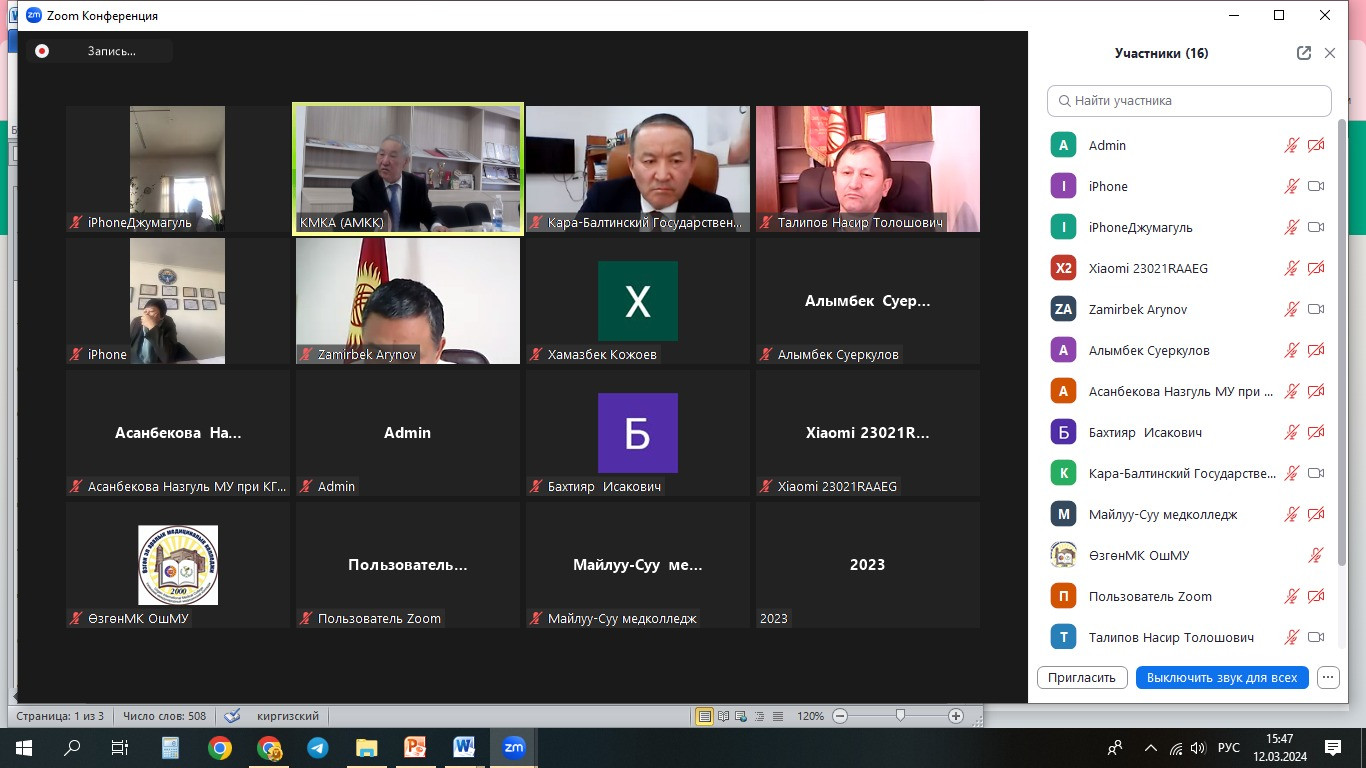 2024-жыл 12-март күнү Кыргызстандагы медициналык колледждердин ассоциациясынын жалпы жыйыны гибриттик форматта өттү.