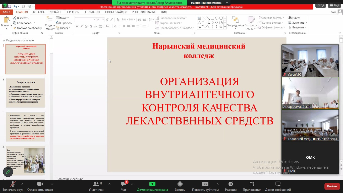 Академиялык мобилдүүлүктү ишке ашыруу максатында Кыргызстандагы медициналык колледждердин ассоциациясынын иш планына ылайык медициналык колледжерде онлайн конок лециялар уюштурулуп, өткөрүлүүдө. Алгач конок лекцияны Нарын медициналык колледжинин окутуучулары баштап берди. Андан соң Токмок жана Талас медициналык колледжинин окутуучулары өткөрдү. Конок лекциялар планга ылайык башка медициналык колледждерде да уланат.