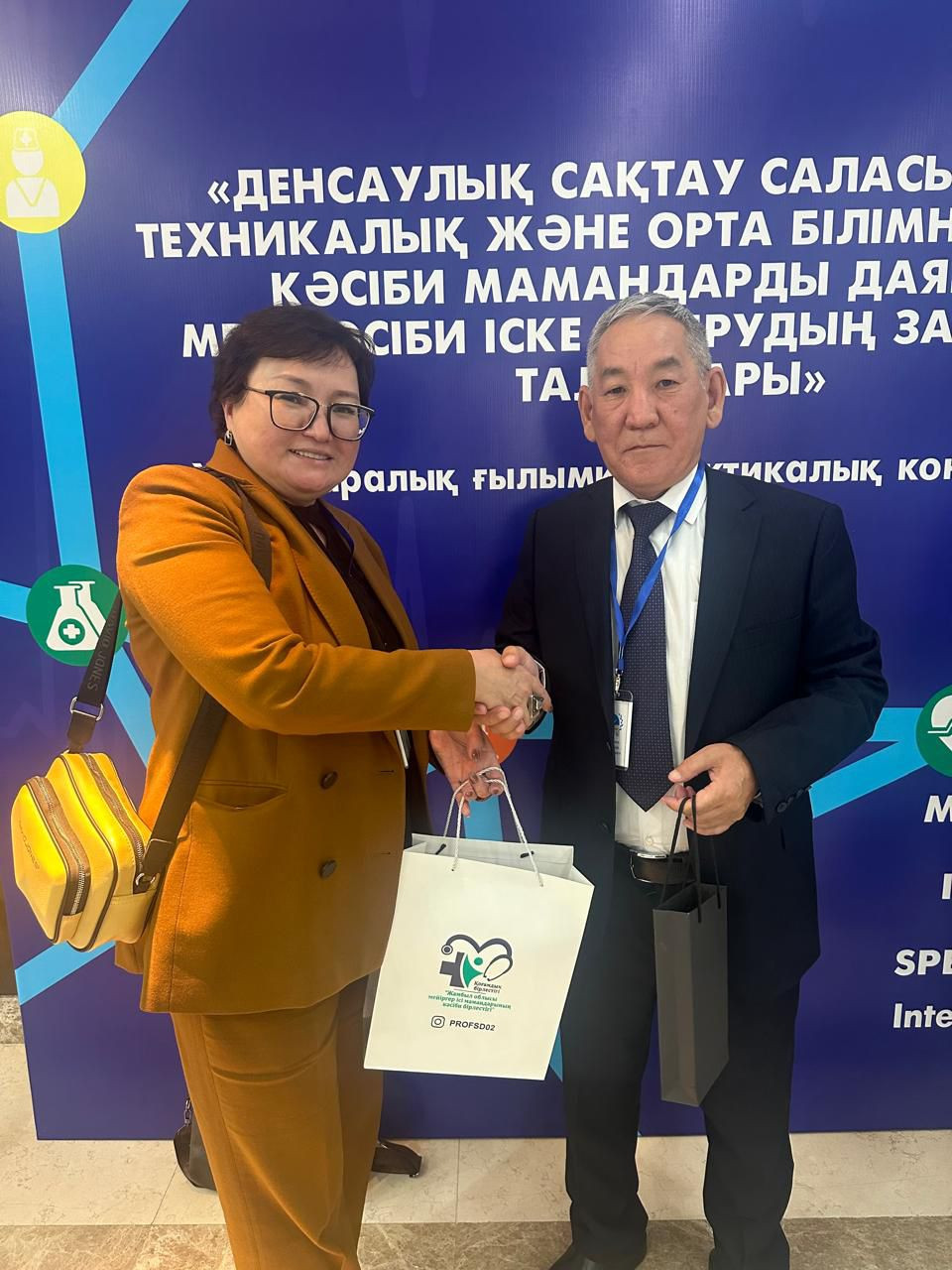 Илимий-практикалык конференцияны жогорку деңгээлде уюштуруп, өткөргөндүгү жана эки өлкөнүн ортосундагы кызматташтыктын өнүгүшүнөн кошкон салымы үчүн Кызылордо жогорку медициналык колледжинин директору Калмакова Жанар Амангельдиевнага Кыргызстандагы медициналык колледждердин ассоциациясынын Ыраазычылык каты тапшырылды.