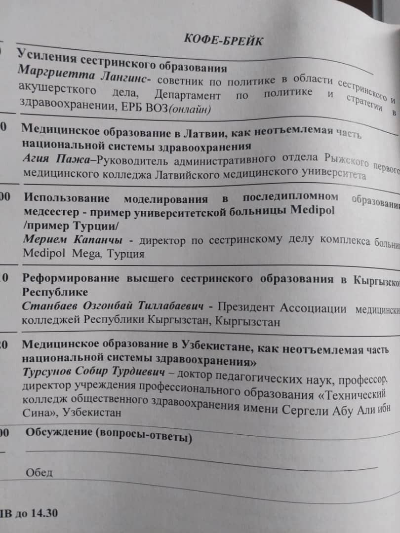 Аталган конференцияда ассоциациянын төрагасы Ө.Т.Станбаев "Кыргыз Республикасындагы жогорку медайымдык билим берүүдөгү реформа" темасында доклад жасады.