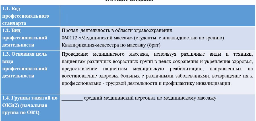 КРнын Саламатттык сактоо министрлигинин 24.09.2024 №1036 буйругу менен "Медициналык массаж" адистигинин кесиптик стандартын иштеп чыгуу үчүн жумушчу топ түзүлгөн. Бүгүн, 2024-жыл 16-октябрь күнү жумушчу топтун "Медициналык массаж" адистигинин кесиптик стандарттын карап чыгуу жана толуктоо боюнча жыйыны болуп, Кыргыз Республикасынын Эмгек социалдык камсыздоо жана миграция министрлигине жана Саламаттык сактоо министрлигине кароого жиберилди.