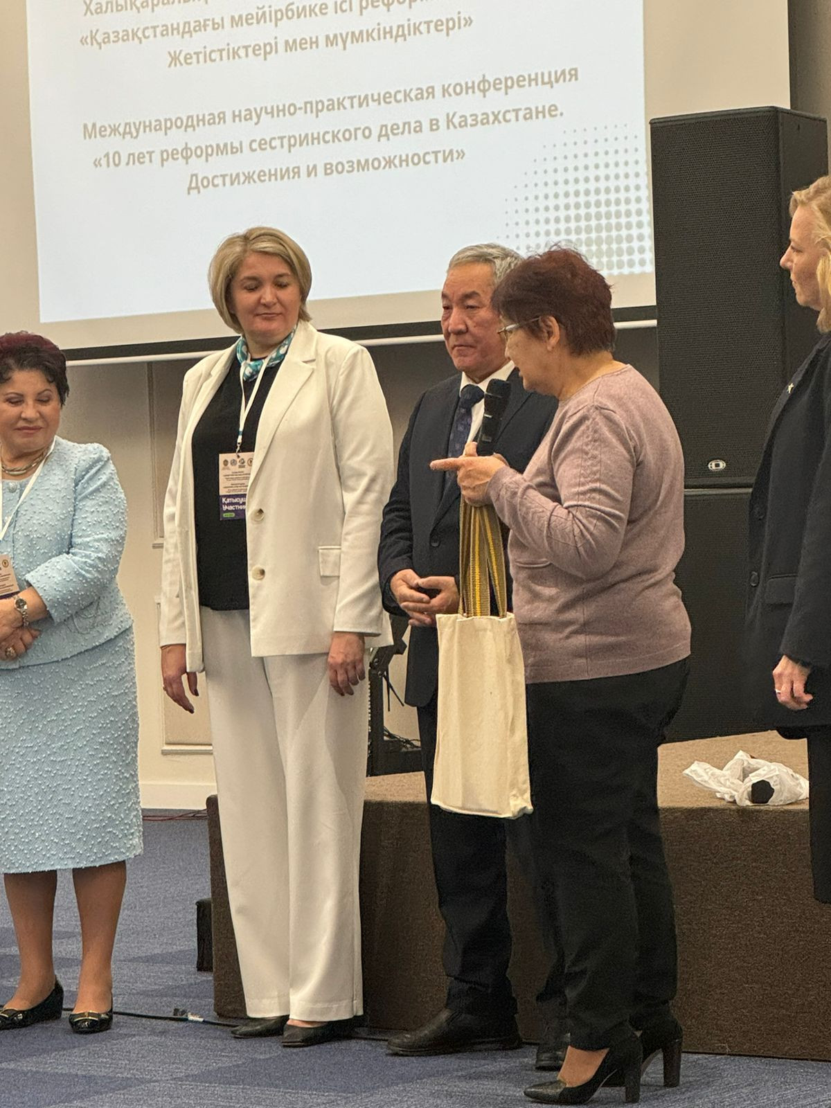 Илимий-практикалык конференцияны жогорку деңгээлде уюштуруп, өткөргөндүгү жана эки өлкөнүн ортосундагы кызматташтыктын өнүгүшүнөн кошкон салымы үчүн "Эмили" жогорку медициналык колледжинин директору Катпенова Сауле Атантаевнага Кыргызстандагы медициналык колледждердин ассоциациясынын Ыраазычылык каты тапшырылды.