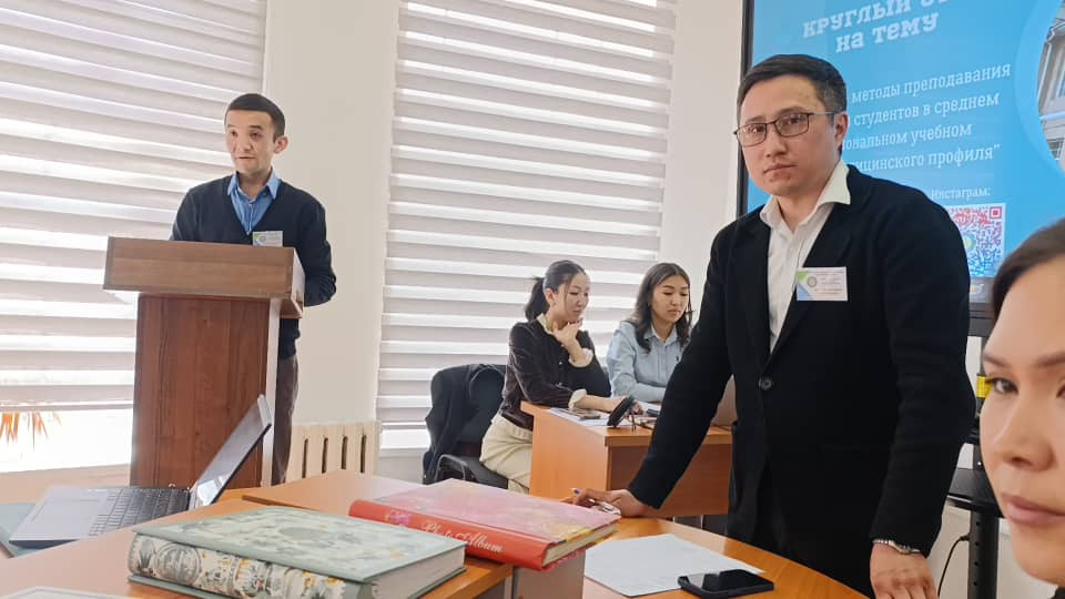 2025-жылдын 15-апрель күнү А.Молдогазиев атындагы Бишкек медициналык колледжи "Орто кесиптик окуу жайында студенттерди медициналык профилде окутуунун жана тарбиялоонун заманбап усулдары" аталышында тегерек стол уюштурду. Тегерек столго медициналык колледждердин методистери, окуу-бөлүм башчылары жана окутуучулар катышышты. Тегерек столдун максаты тажрыйба алмашуу, учурдагы билим берүүдөгү көйгөйлөрдү талкуулоо. Катышуучулар Бишкек медициналык колледжинин окуу базасы менен таанышты.