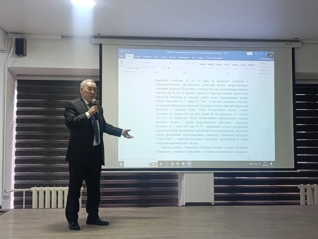 Кыргыз Республикасынын Министрлер кабинетинин 2024-жылыдын 8-июлундагы №371 “Кыргыз Республикасынын башталгыч, орто жана жогорку кесиптик билим берүүнүн мамлекеттик билим берүү стандартынын макетин бекитүү жөнүндө” токтомунун  негизинде ССМ 11.04.2025 №385 буйругу менен 16-апрель күнү Бишкек шаарында “Орто медициналык билим берүүдөгү адистиктердин мамлекеттик билим берүү стандарттарын кайра карап чыгуу боюнча” тегерек стол өттү.
